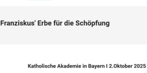 Anlässlich des zehnjährigen Jubiläums der Umweltenzyklika Laudato si‘ fand in der Katholischen Akademie in Bayern am 2. Oktober 2025 eine Tagung statt.