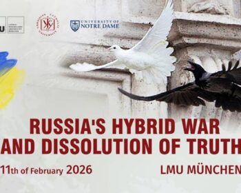 Am 11. Februar 2026 findet an der LMU München ein öffentliches Abendforum im Rahmen des Symposiums „Russia’s Hybrid War and Dissolution of Truth: Reclaiming Foundations of Security and Just Peace“ statt. Im Zentrum steht eine der drängendsten Herausforderungen gegenwärtiger Sicherheitspolitik: die systematische Manipulation und Aushöhlung von Wahrheit im Kontext des russischen Angriffskriegs gegen die Ukraine – und die Frage, welche ethischen, religiösen und kulturellen Ressourcen nötig sind, um Vertrauen, Integrität und eine gerechte Friedensordnung zu stärken. Das Forum nimmt ernst, dass die „Schlacht um Wahrheit“ nicht nur eine mediale oder strategische Dimension hat, sondern Menschenwürde, zivilgesellschaftliches Vertrauen und die moralische Kohärenz politischer Ordnungen betrifft. Aus Perspektiven von Theologie, Ethik, Philosophie und politischem Denken diskutiert der Abend, wie Wahrheit und Resilienz als Grundlagen europäischer und globaler Sicherheit neu behauptet werden können. Open Keynote Forum (11. Februar, 18:00–21:30) Nach Begrüßungen u. a. durch Matthias Tschöp (Präsident der LMU), Taras Dobko (Rektor der Ukrainian Catholic University) und Benedikt Franke (CEO der Munich Security Conference) folgen zwei Keynotes: Prof. Dr. Karl Schlögel (Berlin), Osteuropa-Historiker und Träger des Friedenspreises des Deutschen Buchhandels 2026 Maksym Butkevych (Kyiv), Menschenrechtsaktivist und Journalist, Träger des Václav-Havel-Menschenrechtspreises 2025 In der anschließenden Diskussion sprechen u. a. Kardinal Reinhard Marx, Katrin Boeckh und Regina Elsner; moderiert wird der Abend von Franziska Davies. Musikalisch begleitet wird das Forum durch Katharina Farbova (Klarinette) und Quirin Vogel (Klavier); anschließend ist ein Empfang mit Austausch vorgesehen. Das Forum ist Teil einer Symposiumsreihe zu den „Moral and Religious Dimensions of Security“ im Vorfeld der Munich Security Conference, organisiert von LMU München, Ukrainian Catholic University (Lviv) und der University of Notre Dame (USA). Organisatorisches Datum: 11. Februar 2026 Zeit: 18:00–21:30 Ort: LMU München, Große Aula, Geschwister-Scholl-Platz 1 Sprache: Englisch Anmeldung: via QR-Code im Flyer Weitere Informationen: Programm des gesamten Symposions